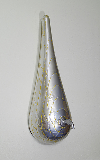 ; 2018; wood, brass nails, found objects; 31.5"H x 10.5"W x 11.5"D